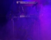 The riotous punk trio performs amid heavy fog and flashing lights.