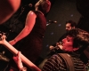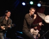 T-BASA, or Tim Basaraba — who is a contributor to Nada Mucho — kicked off the night by wryly reading a list of the Skylark’s food specials for the evening. What followed was a beautifully curated one-man set filled with dark acoustic accompaniments to smartly sardonic lyricism about everything from love to the homelessness issue. The tone of the set can best be described by the title of T-BASA’s latest album: *Caffeinated Funeral Songs.*While, solo, Basaraba had a few issues with fluctuating time, his set was ultimately captivatingly cryptic as he controlledly flailed his limbs around while keeping his butt firmly planted on a single black stool.